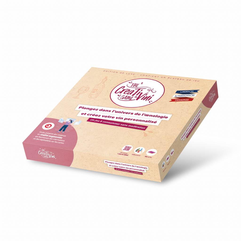 Creativini se compose d’un plateau de jeu et de 14 lots de cartes. Le principe est simple : créer un itinéraire afin de concevoir un style de vin. Pour cela, les joueurs doivent soigneusement réfléchir aux cartes utilisées : matériel végétal, pratiques viticoles, techniques de vinification, intrants œnologiques… Bonus : des cartes connaissance peuvent être scannées avec son smartphone, dans le but de fournir des informations très utiles au déroulement de la partie. Dans un objectif d’immersion, ces détails sont proposés au joueur via le concept de réalité augmentée.