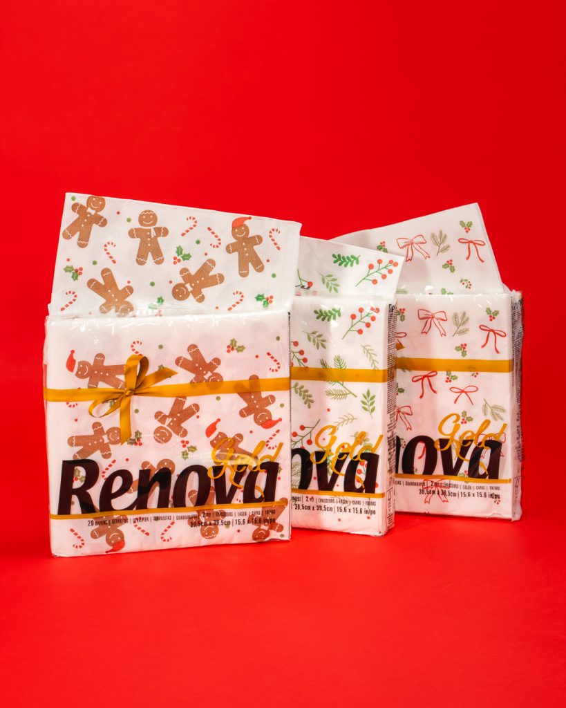 Renova observe une tendance marquante : un véritable engouement pour les tables « signature ». Les serviettes décoratives deviennent un réflexe pour habiller un brunch de Noël, un goûter en famille ou un dîner du réveillon. Leur texture premium et leurs encres adaptées au contact alimentaire en font un choix à la fois esthétique et pratique.