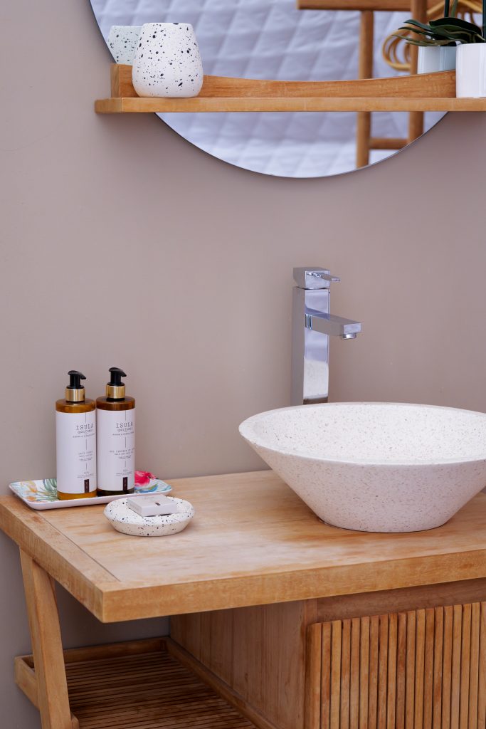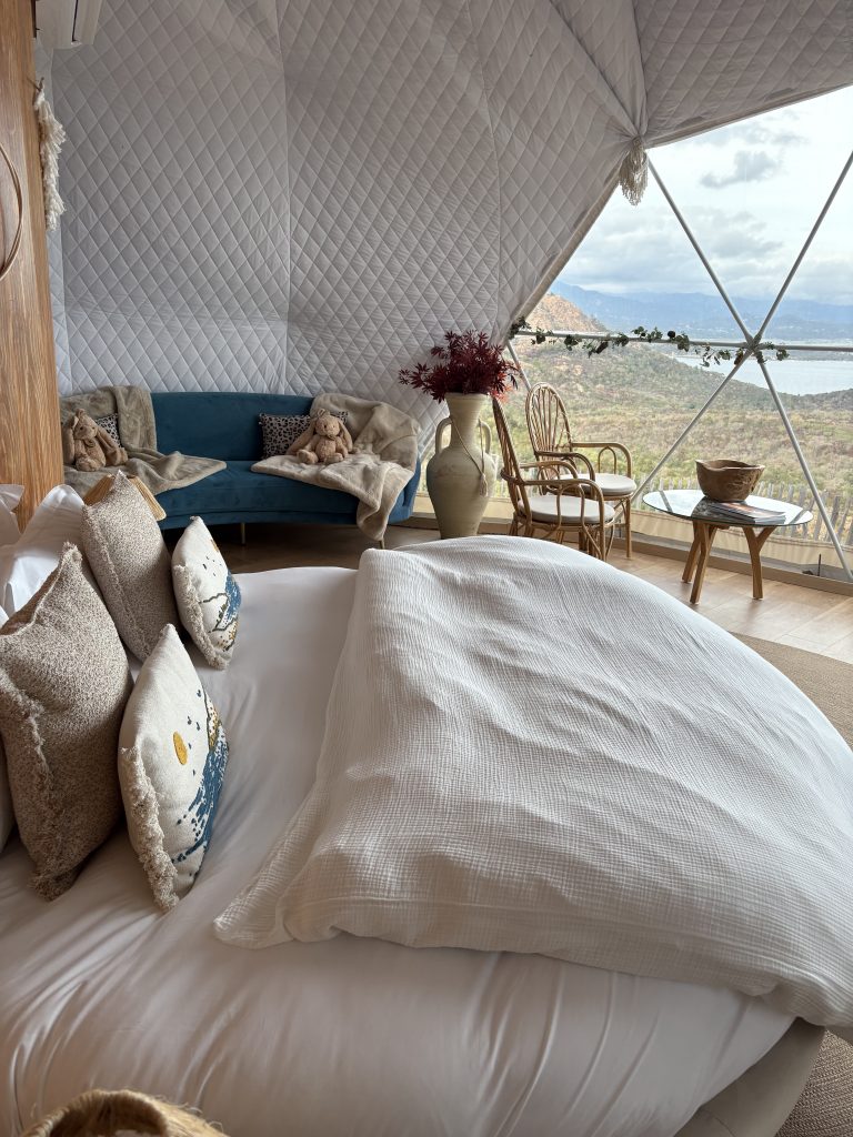 Le lieu est idéalement situé à 7 km de Porto-Vecchio et 3 km de Palombaggia, tout en donnant un sentiment de liberté grâce à sa vue panoramique sur la mer. Les panneaux ne l’indiquent pas dans le but affiché de garder ce lieu intime un peu secret… “J’ai choisi le concept insolite des bulles pour imaginer une expérience immersive en plein maquis corse« , souligne Sonia Rocca. Ainsi, chaque bulle est aménagée comme une chambre d’hôtel haut de gamme de 40 mètres carrés, avec trois thèmes décoratifs évocateurs (bois flotté, mer et relief corse).