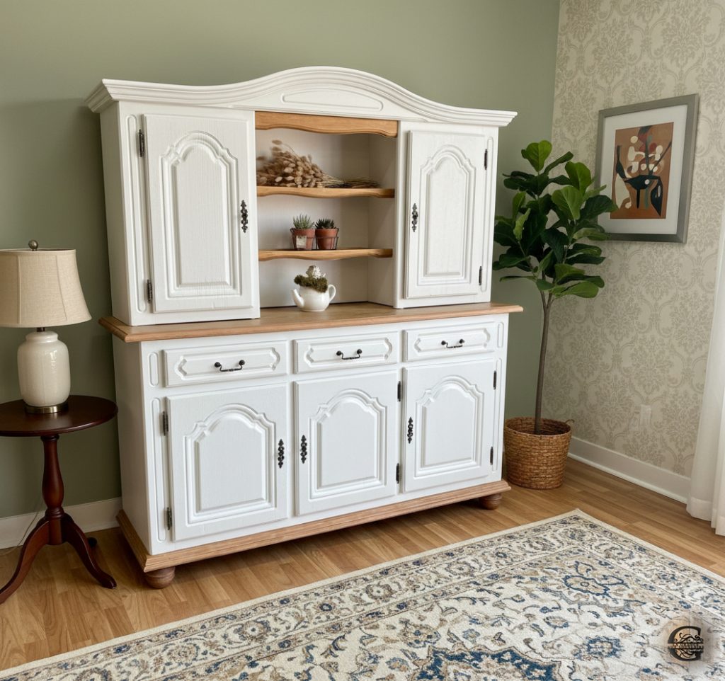 Parmi ses incroyables transformations, on retrouve un vieux buffet Henri II, un vaisselier en marbre, des meubles des années 60-70, etc.