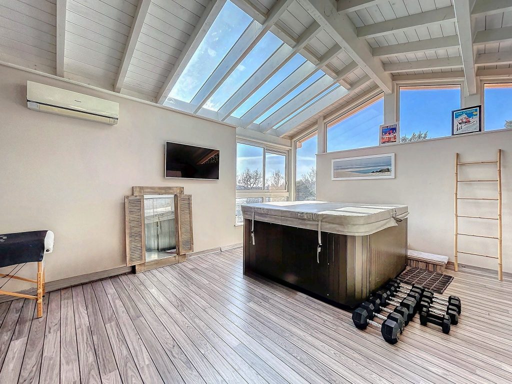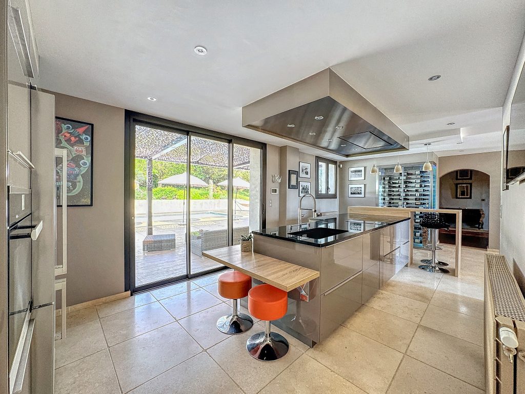 À l’extérieur, tout a été pensé pour le bien-être et la détente : jardin paysager, fontaine, nombreuses places de stationnement, ainsi qu’une magnifique piscine de 12 x 4 mètres entourée d’une large plage. Une terrasse ombragée sous pergola, attenante à la cuisine, invite à profiter pleinement des beaux jours.